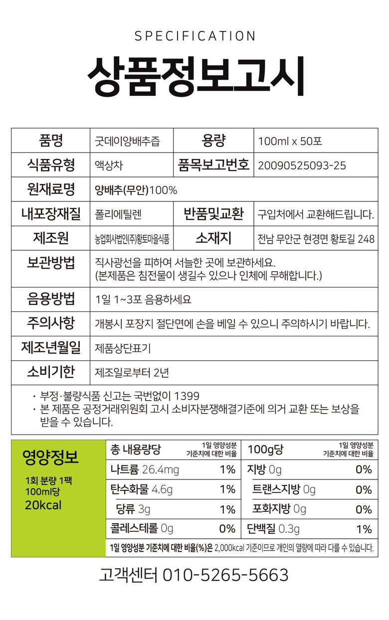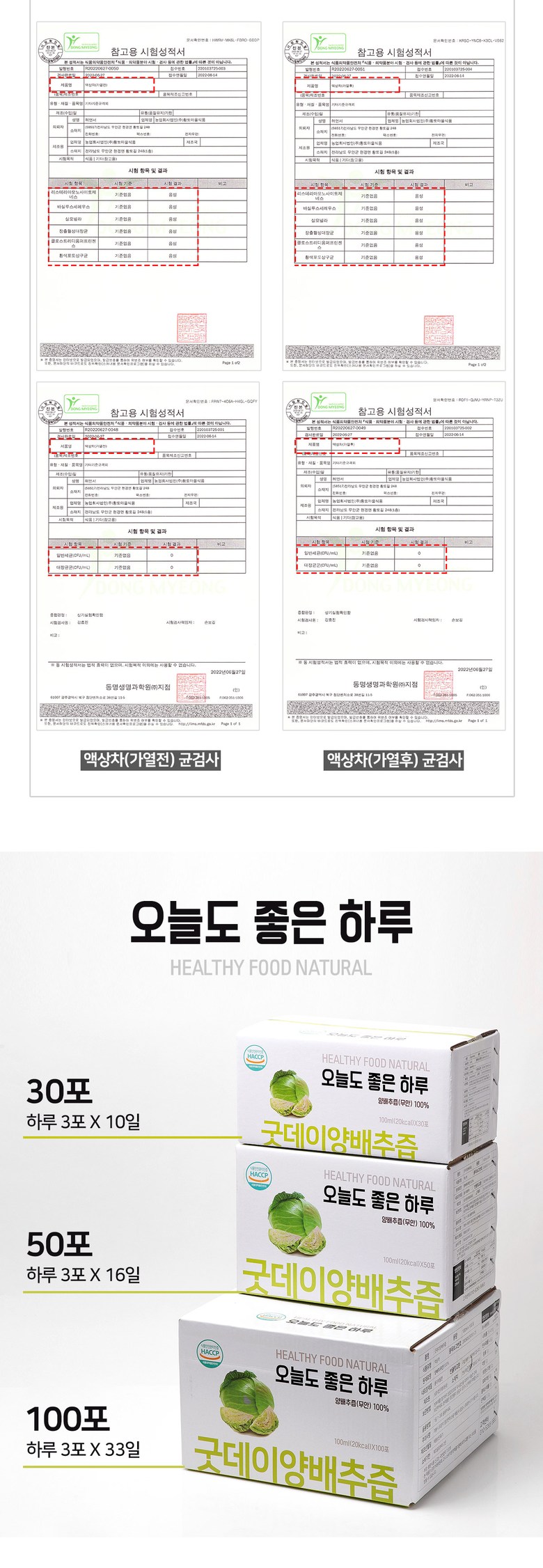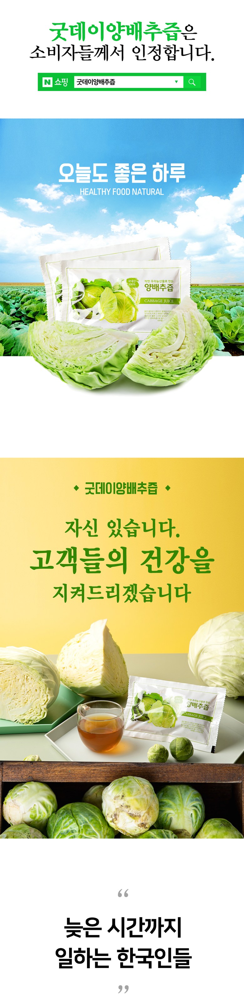 굿데이 27800원 100ml 100포 맛보기진행 100박스 양배추즙 젊은 정직한 농부가 만든 순수 하고 맛있는 건강 식품