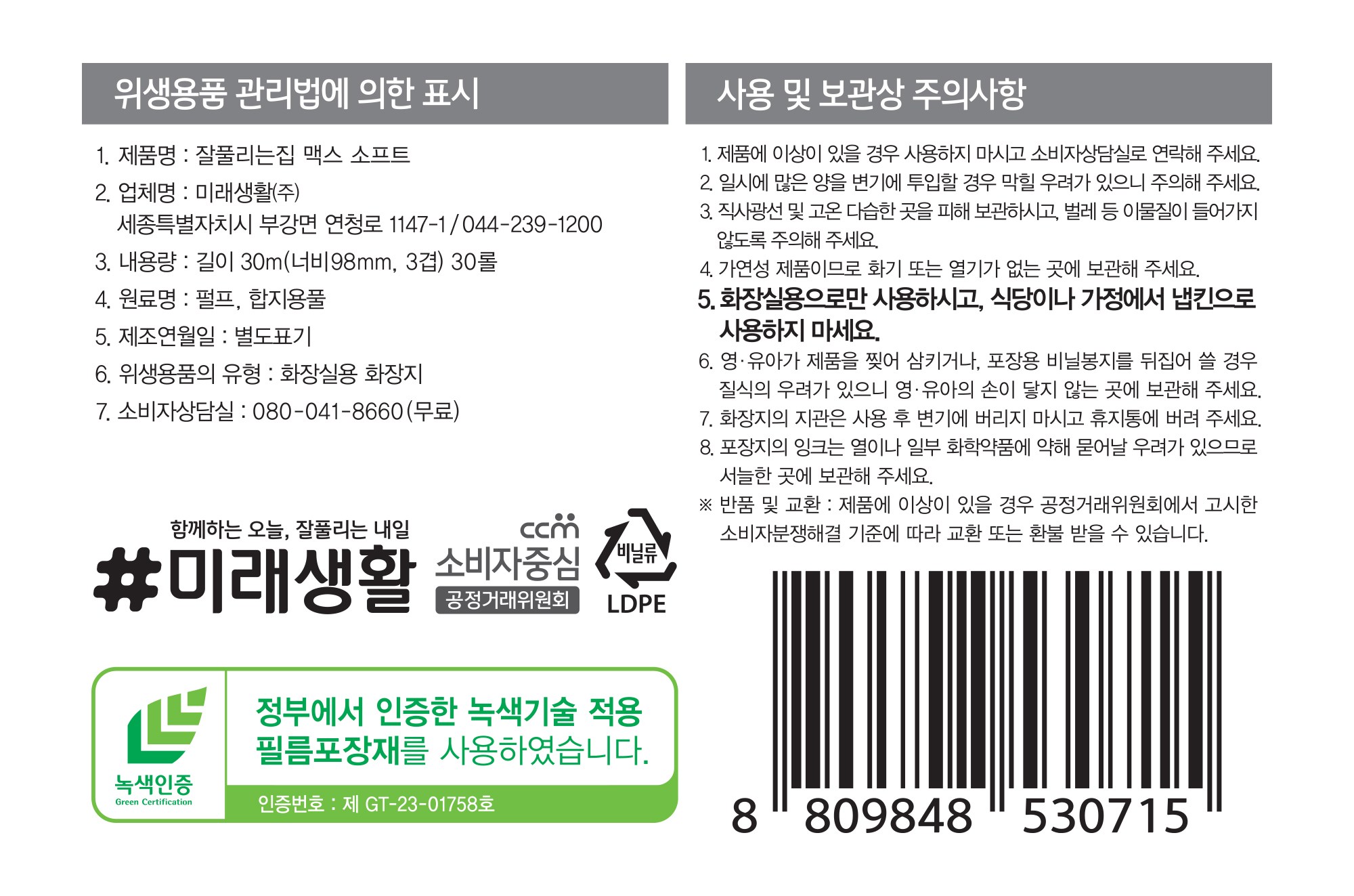 | 품명 및 모델명 | 잘풀리는집 맥스 소프트 | 인증/허가 사항 | 위생용품 |