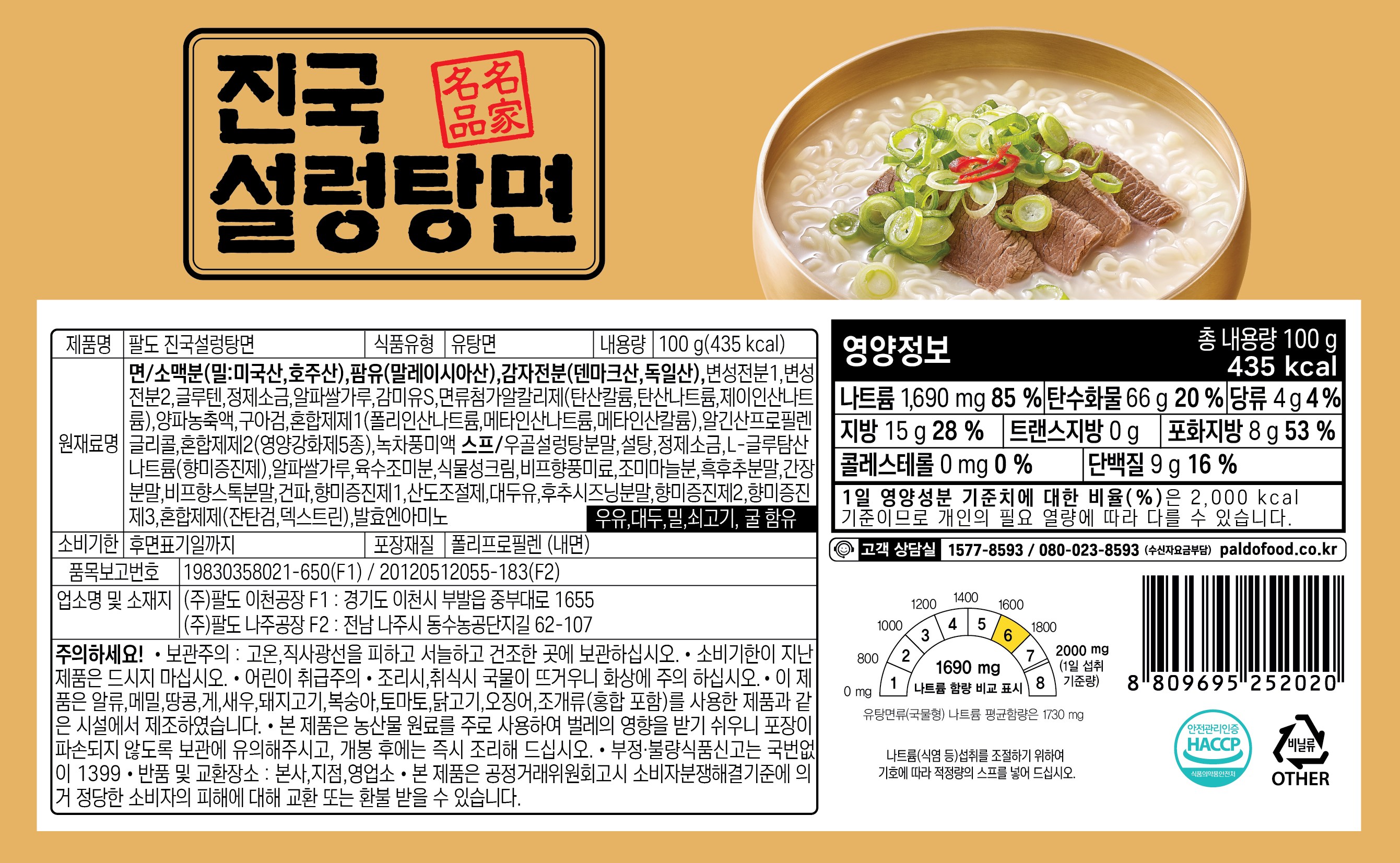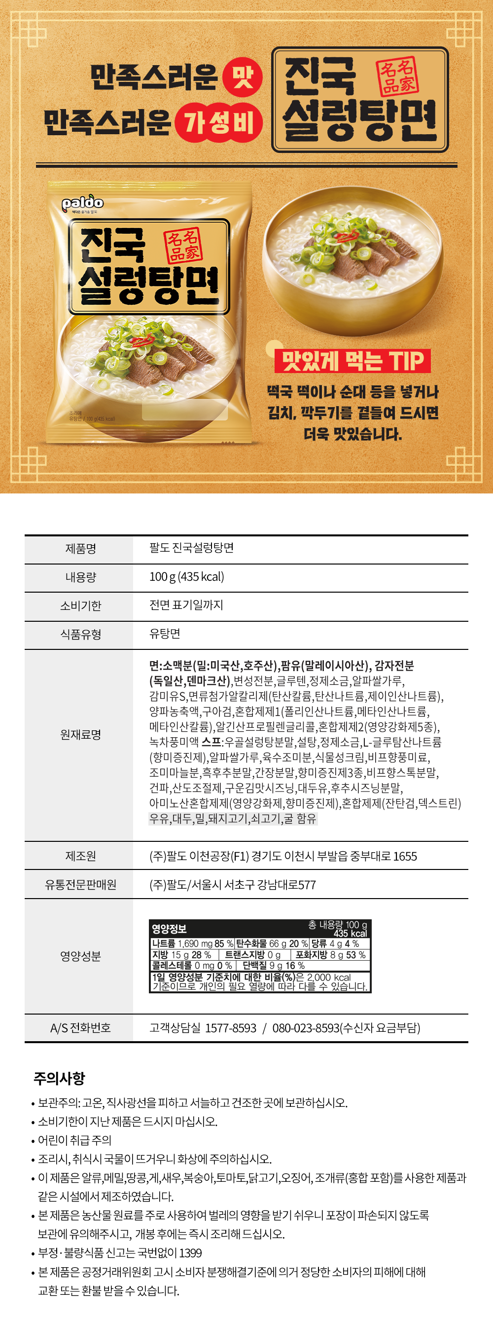 | 제품명 | 팔도 진국설렁탕면 | 식품의 유형 | 컨텐츠 참조 |