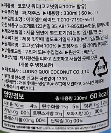 | 포장단위별 내용물의 용량(중량), 수량 | 330ml x 12개 | 원재료명 및 함량 | 컨텐츠 참조 |