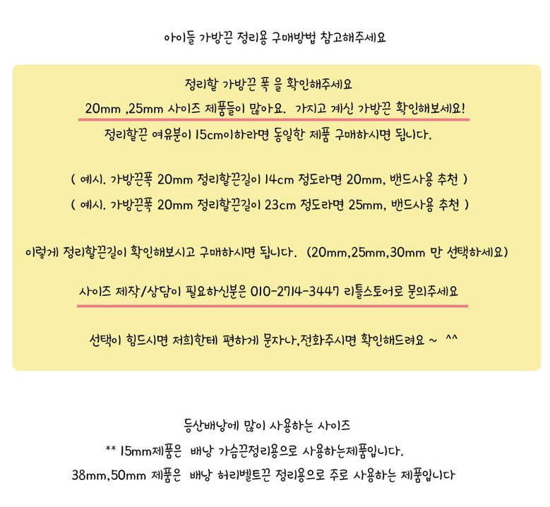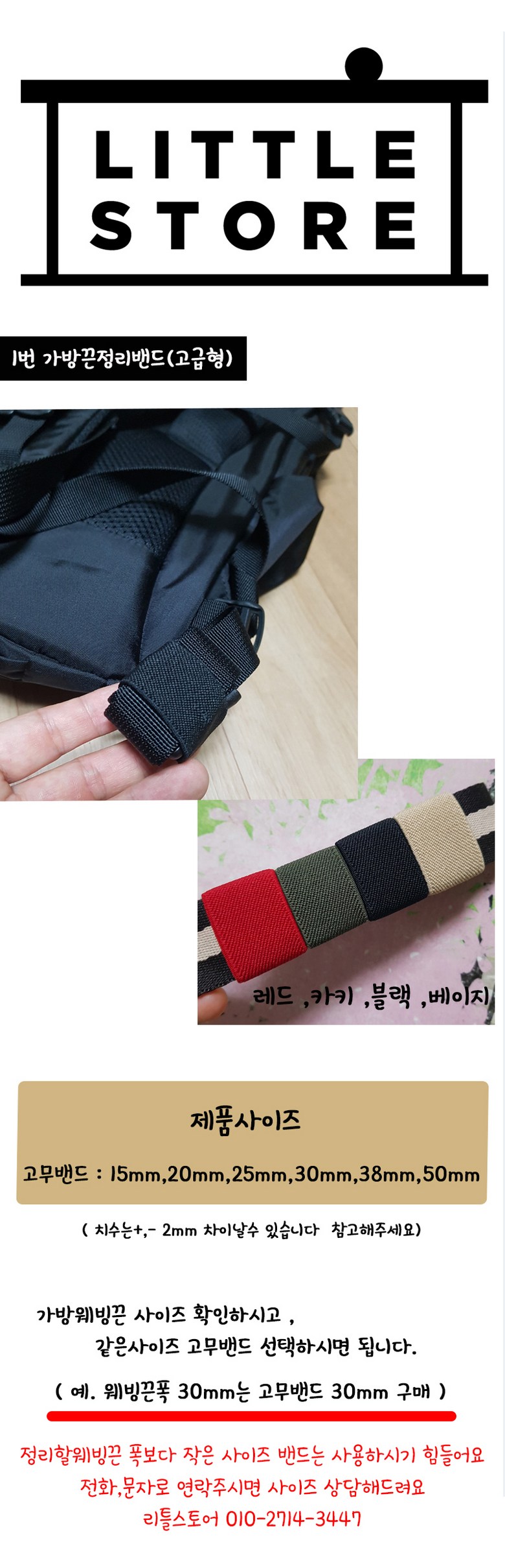 | 품명 및 모델명 | 가방끈정리 밴드 | 인증/허가 사항 | 해당없음 |