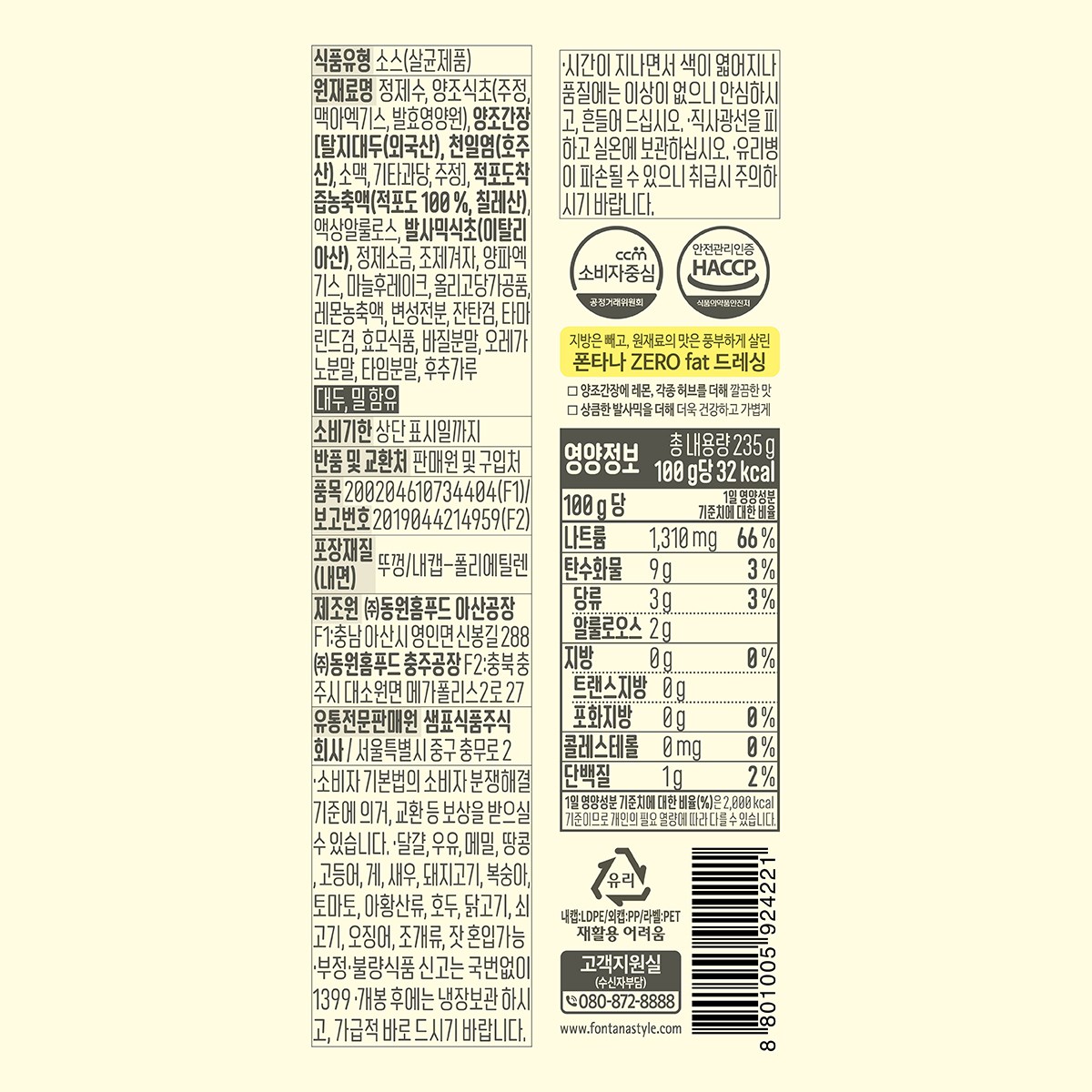 | 제품명 | 무지방 오리엔탈 드레싱 | 식품의 유형 | 컨텐츠 참조 |