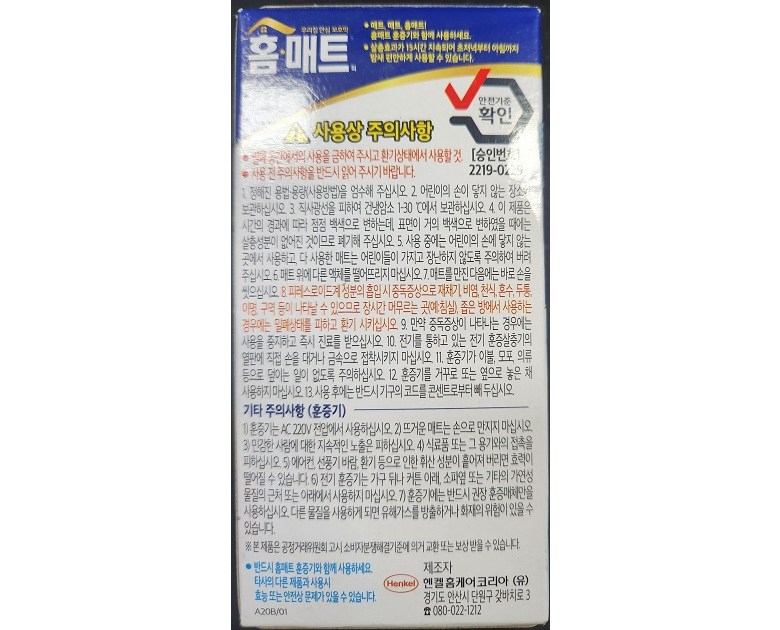 | 품명 및 모델명 | 홈매트리필30매 | 인증/허가 사항 | 상품 상세페이지 참조 |