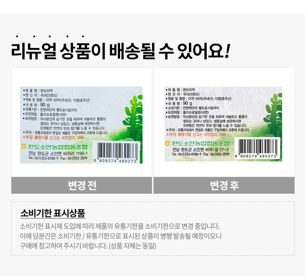 | 소비기한 또는 품질유지기한 | 소비기한(또는 유통기한) : 2026년 09월 28일 이거나 그 이후인 상품 | 세부 품목군별 표시사항 | 농수산물:-유전자변형:해당없음-지리적표시사항:해당없음 |