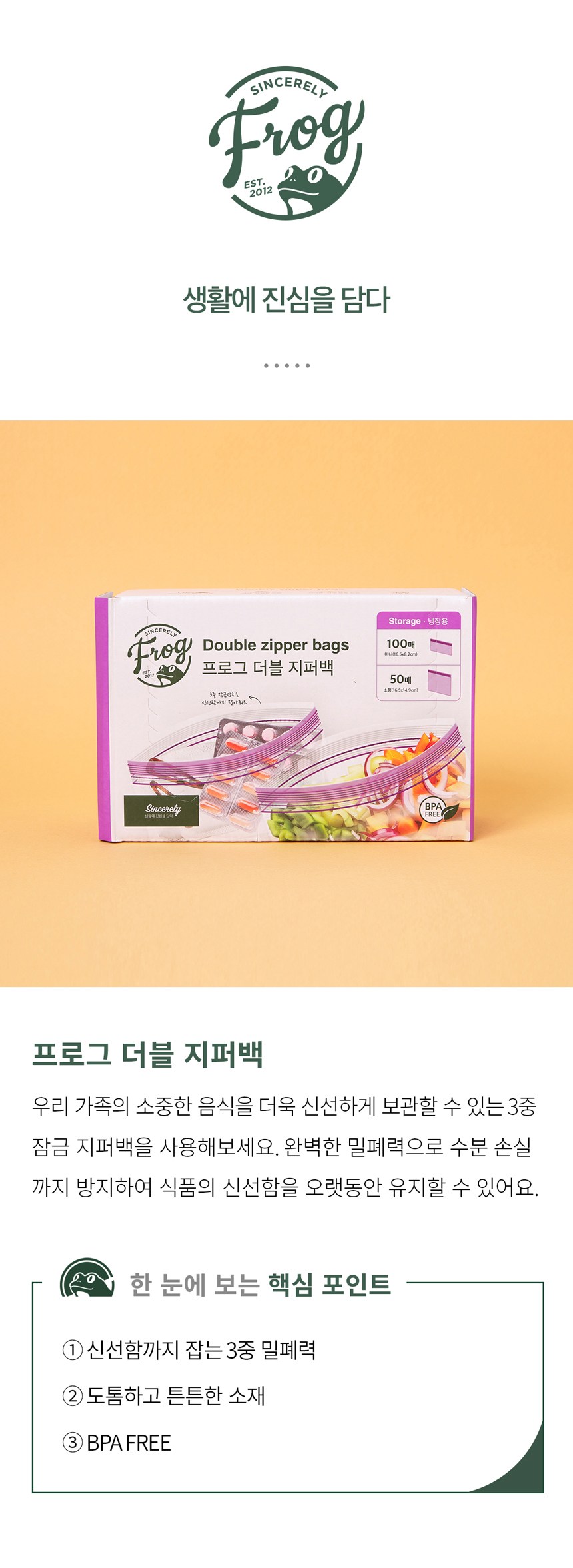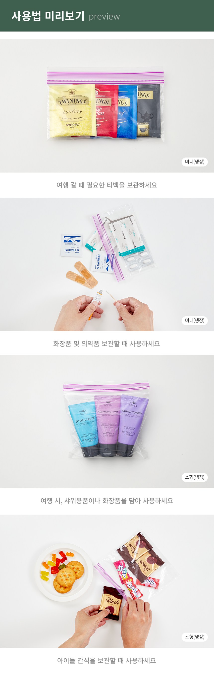 | 품명 및 모델명 | 프로그 더블 지퍼백 냉장 보관용 혼합 세트, 미니 + 소형 | 재질 | 컨텐츠 참조 |