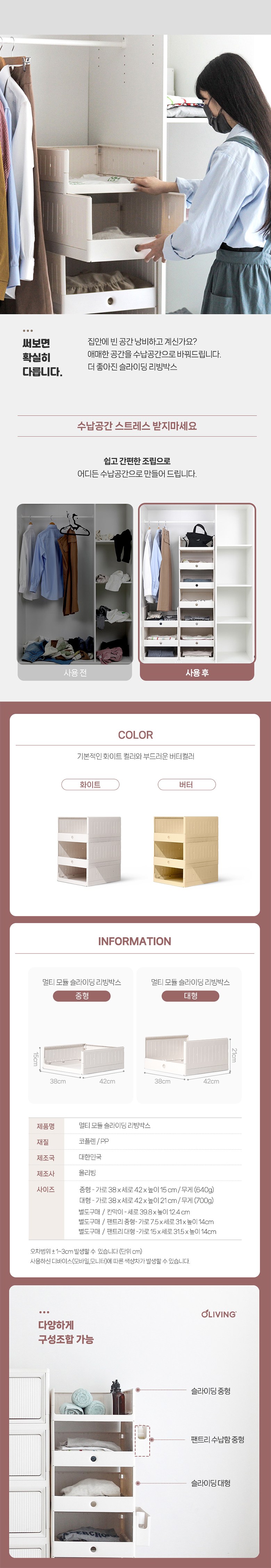 | 품명 및 모델명 | 올리빙 멀티 모듈 슬라이딩 리빙박스 대 | 인증/허가 사항 | 해당없음 |