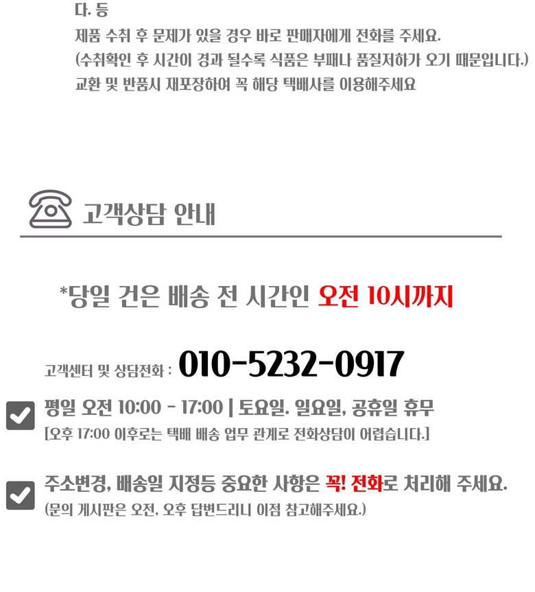 - ㆍ모니터 해상도의 차이로 인해 색상이나 이미지가 실제와 달라, 고객이 단순 변심으로 교환/반품을 무료로 요청하는 경우