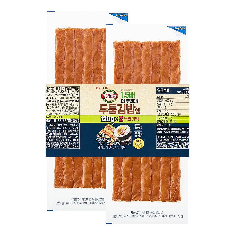 김밥에 빠질 수 없는 든든한 속 재료, 김밥햄입니다. 고소한 풍미와 쫄깃한 식감으로 입맛을 사로잡는데요. 마늘을 더해 풍부한 감칠맛을 즐기실 수 있답니다. 취향에 따라 깻잎이나 멸치 등을 곁들여 나만의 김밥을 만들거나, 산적 재료로 활용해 보세요.