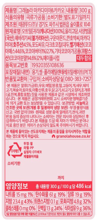 | 포장단위별 내용물의 용량(중량), 수량 | 300g, 1개입 | 원재료명 및 함량 | 컨텐츠 참조 |
