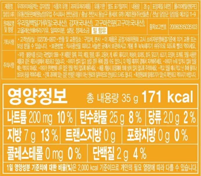 | 제품명 | 우리아이처음먹는 감자얌얌 | 식품의 유형 | 컨텐츠 참조 |