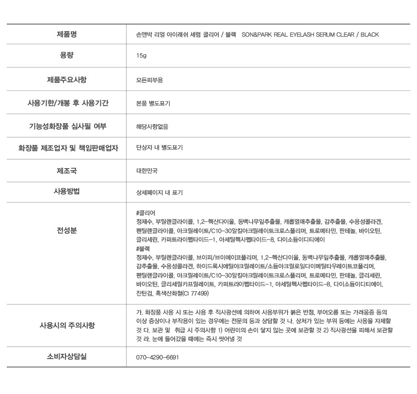 - 사용부위: 속눈썹