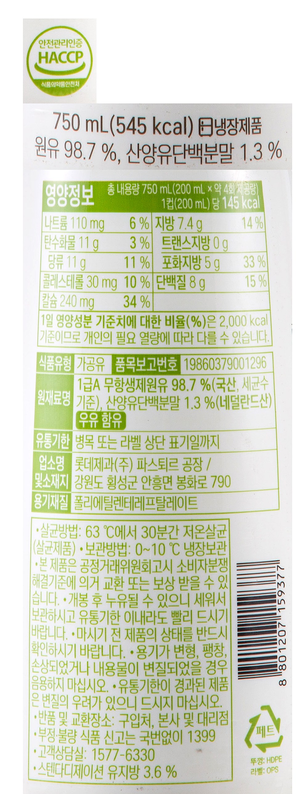 | 제품명 | 바른목장 산양프로틴우유 | 식품의 유형 | 컨텐츠 참조 |