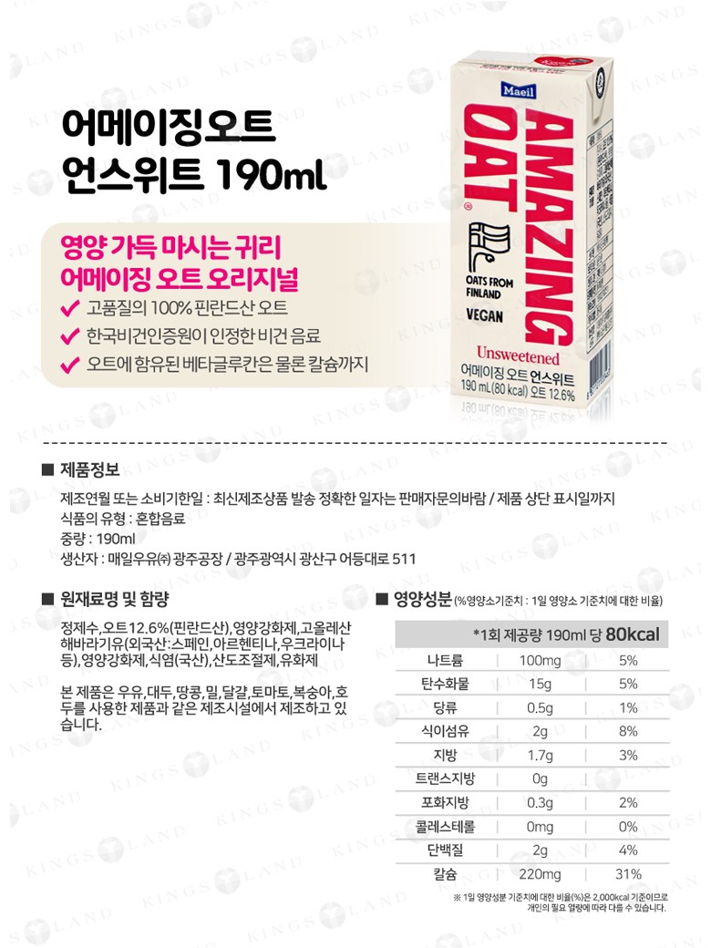 | 제품명 | 상품 상세페이지 참조 | 식품의 유형 | 상품 상세페이지 참조 |