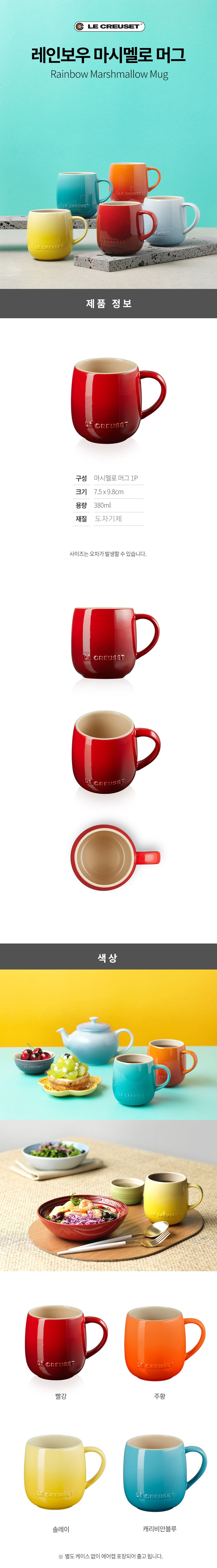 | 품명 및 모델명 | 르크루제 U 마시멜로 머그컵 380ml | 재질 | 컨텐츠 참조 |