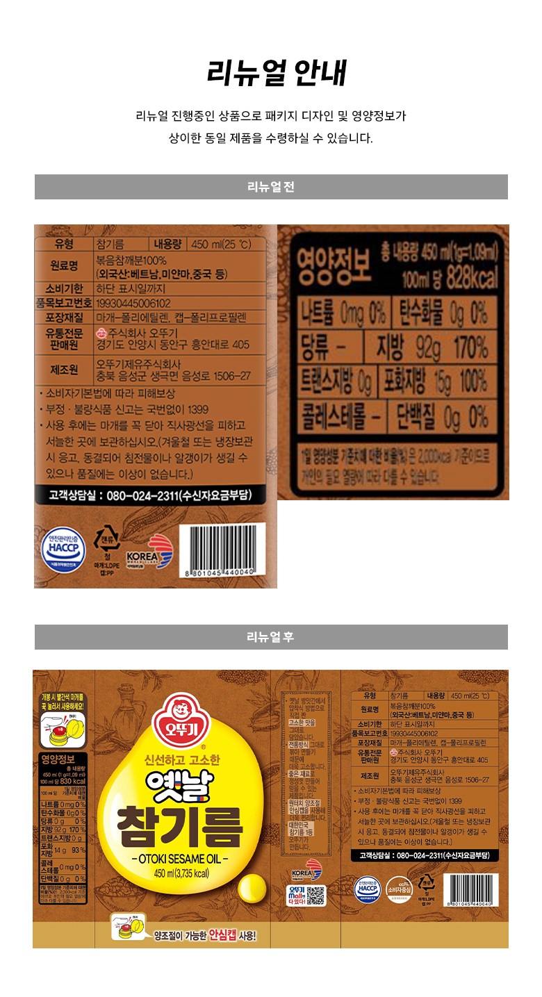 | 제품명 | 옛날 참기름 | 식품의 유형 | 컨텐츠 참조 |