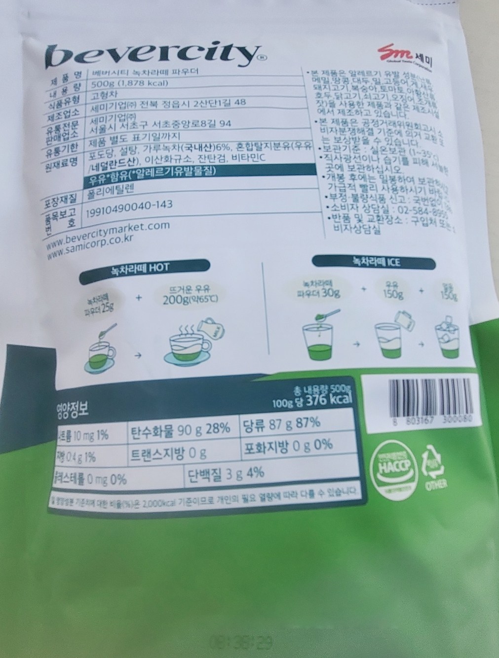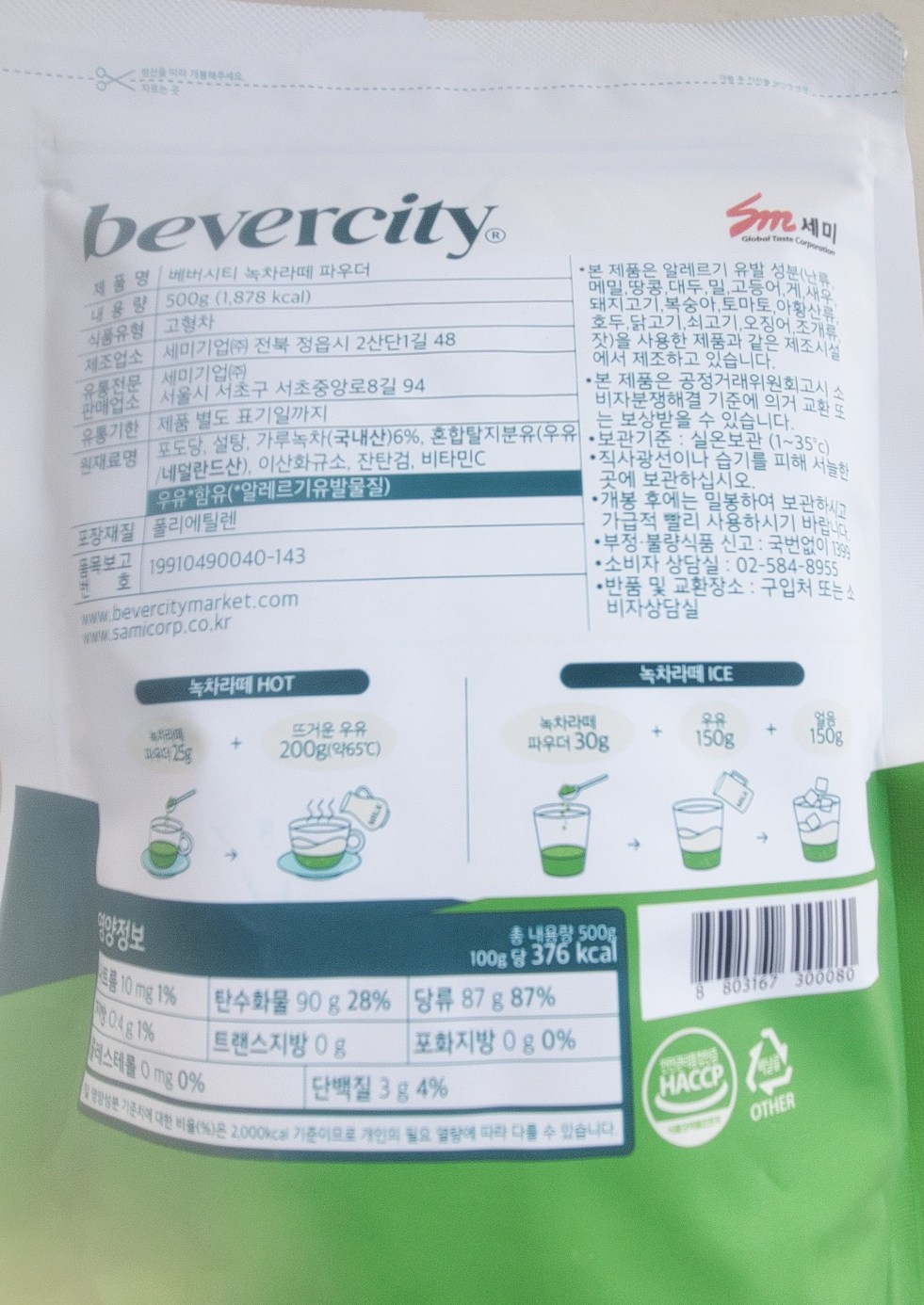 | 제품명 | 세미 녹차라떼 파우더 | 식품의 유형 | 컨텐츠참조 |