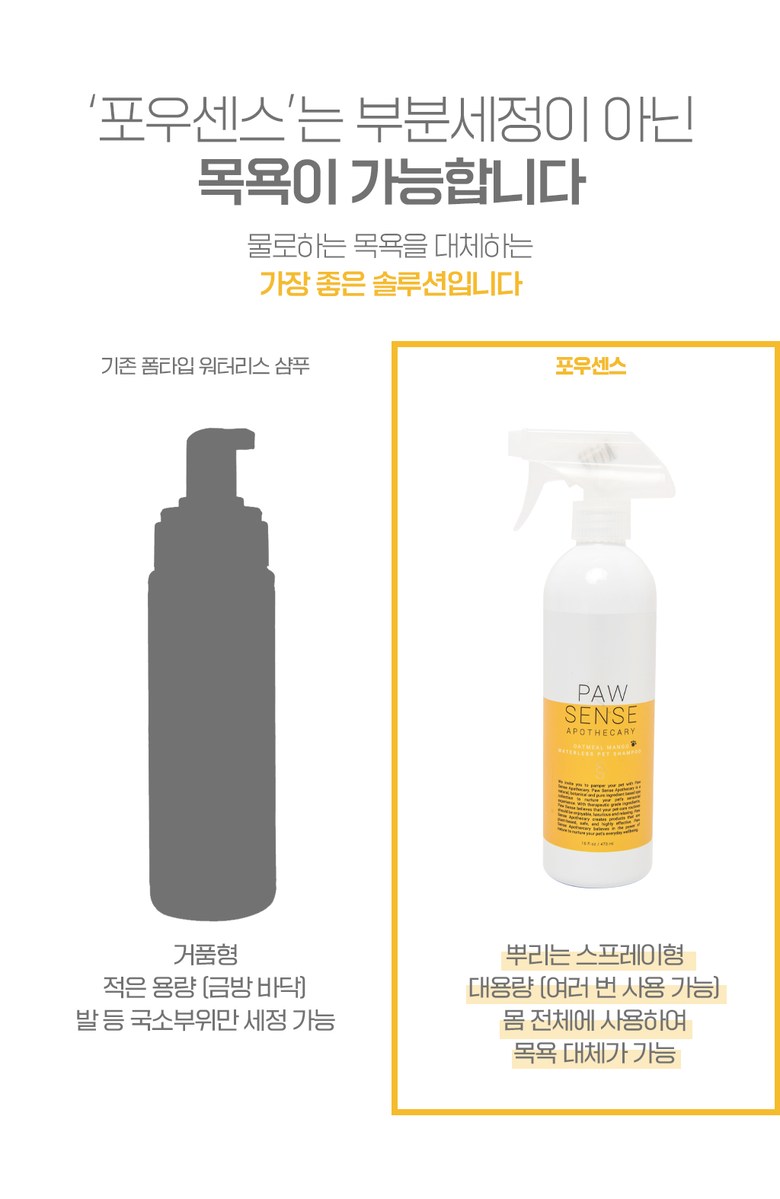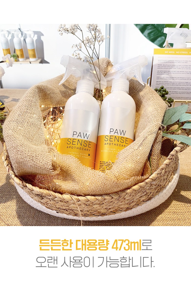 포우센스 워터리스 펫 샴푸 473ml 오트밀망고 스프레이형 물 없이 전신 목욕 미스트 강아지 고양이 샴푸