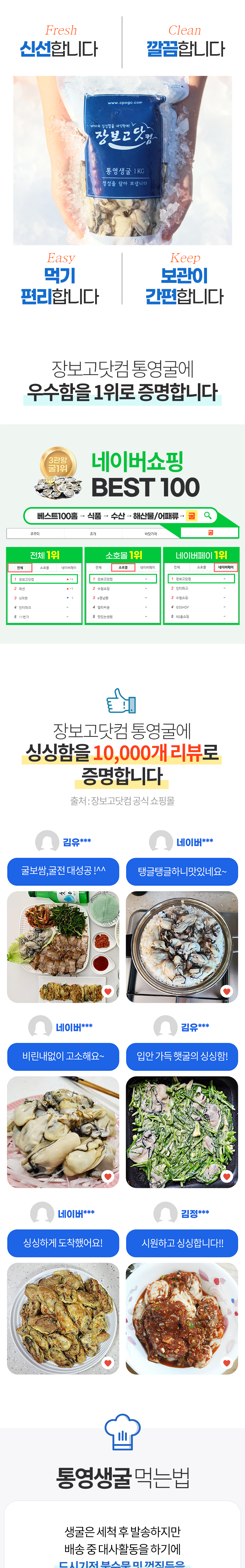 | 품목 또는 명칭 | 굴, 통영굴, 통영생굴 | 포장단위별 내용물의 용량(중량),수량,크기 | 1kg 신선 지퍼백 포장 |