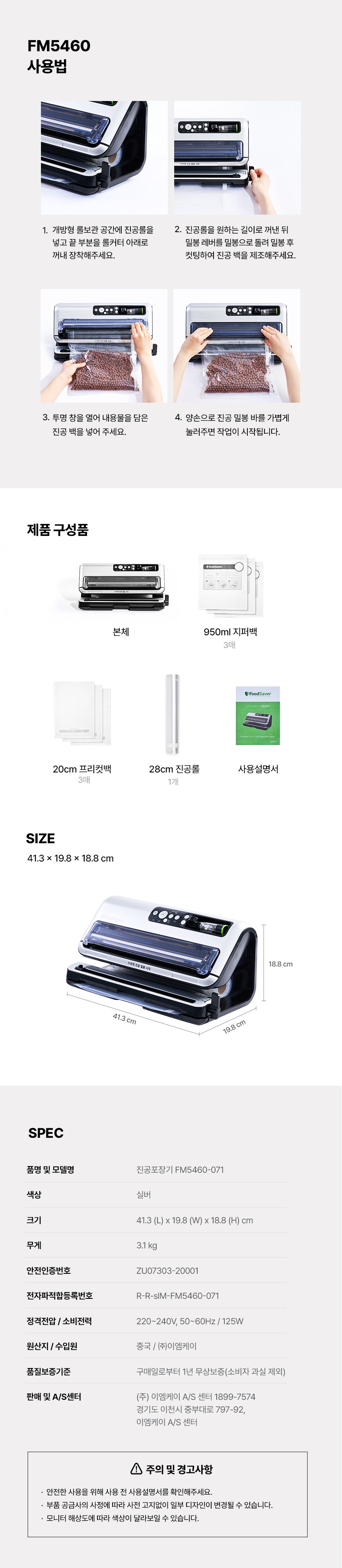| 품명 및 모델명 | 푸드세이버 진공 머신(필름접착기)/FM5460-071 | KC 인증정보 | ZU07303-20001/MSIP-REM-Xse-FM5460-071 |