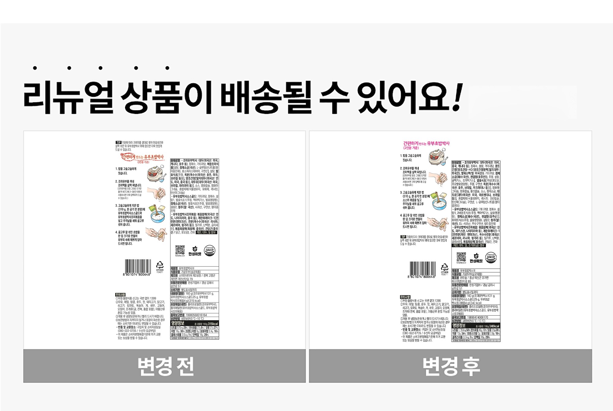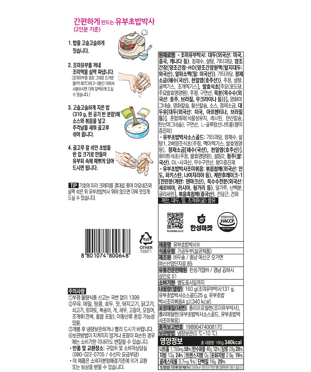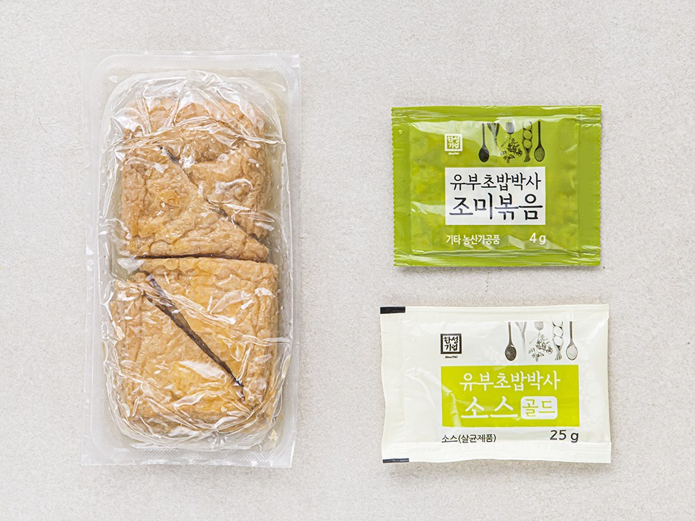 조미유부, 소스, 조미볶음으로 구성되어 있습니다.