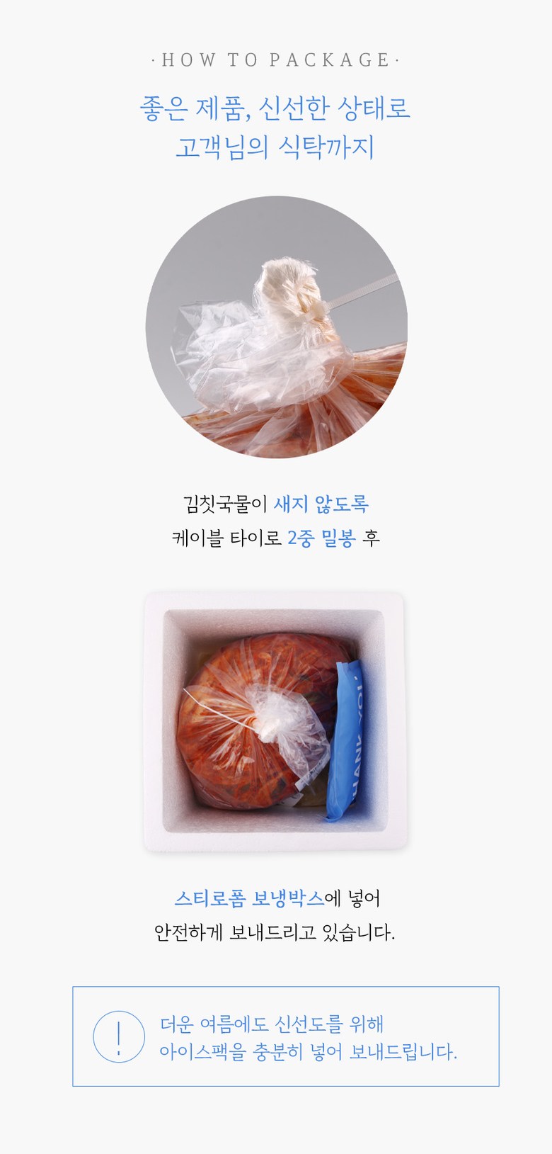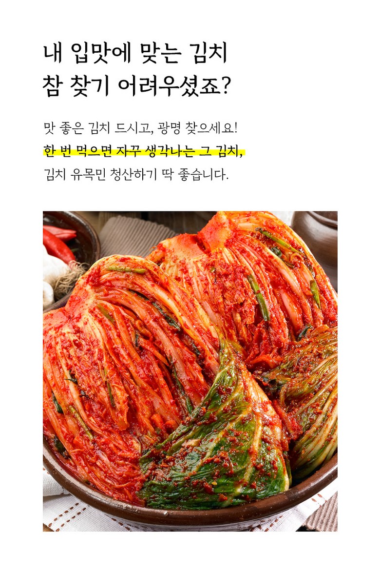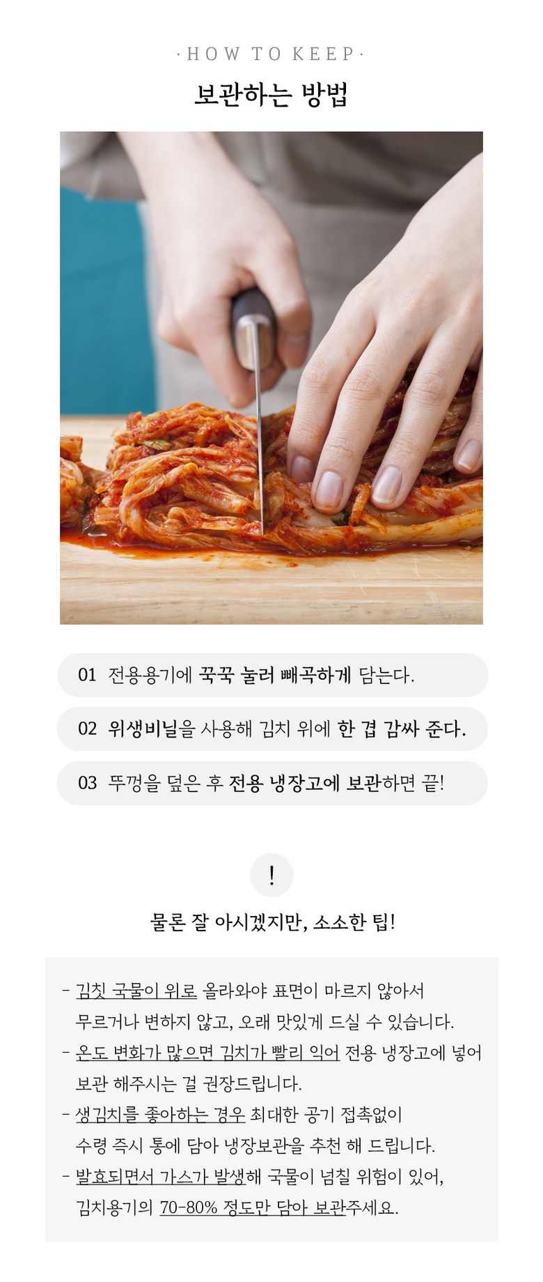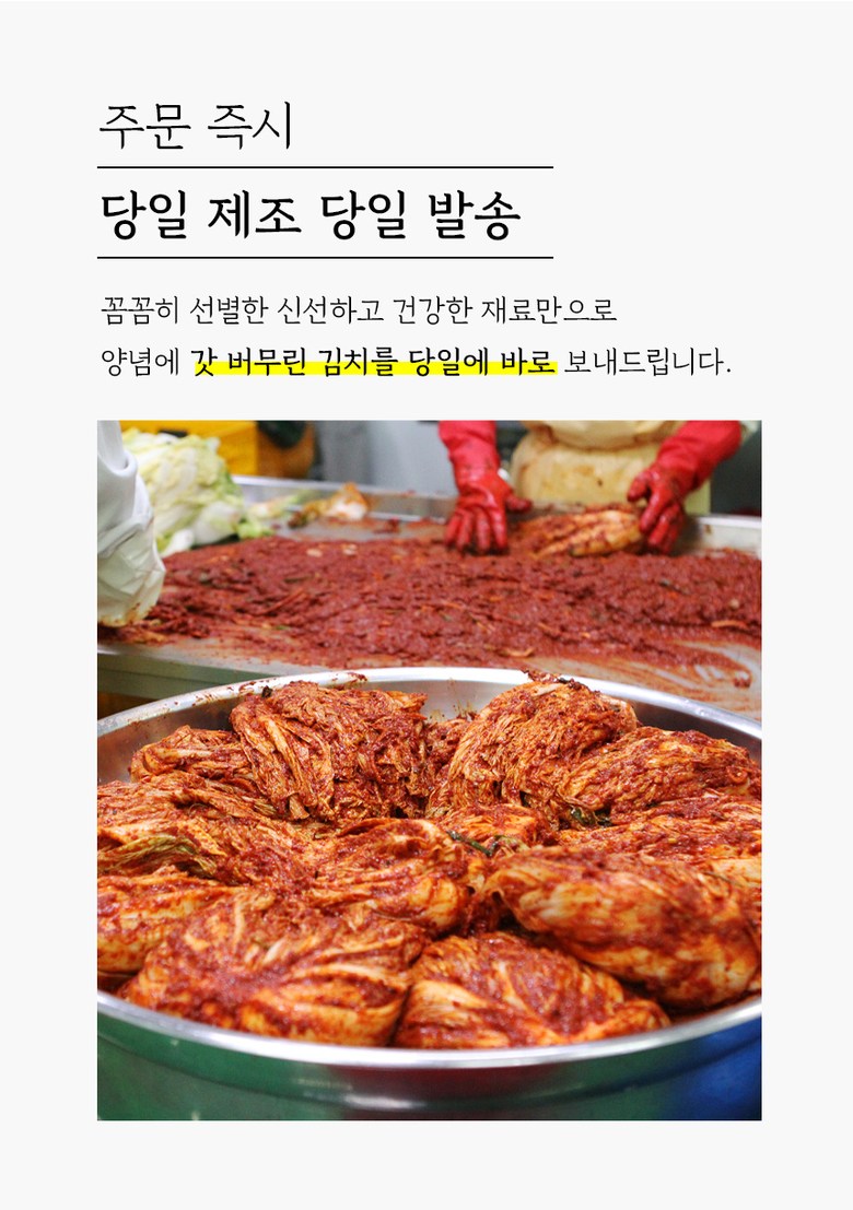 | 포장단위별 내용물의 용량(중량), 수량 | 2kg/3kg/5kg/7kg/10kg, 1개 | 원재료명 및 함량 | 절임배추72.5%[배추98%(국산),천일염(국산)],육수(국산),고춧가루(국산),무(국산),찹쌀풀(국산),새우젓(국산),까나리액젓(국산),마늘(국산),양파(국산),멸치액젓(국산),물엿,L-글루탐산나트륨,설탕 ▣새우함유 |