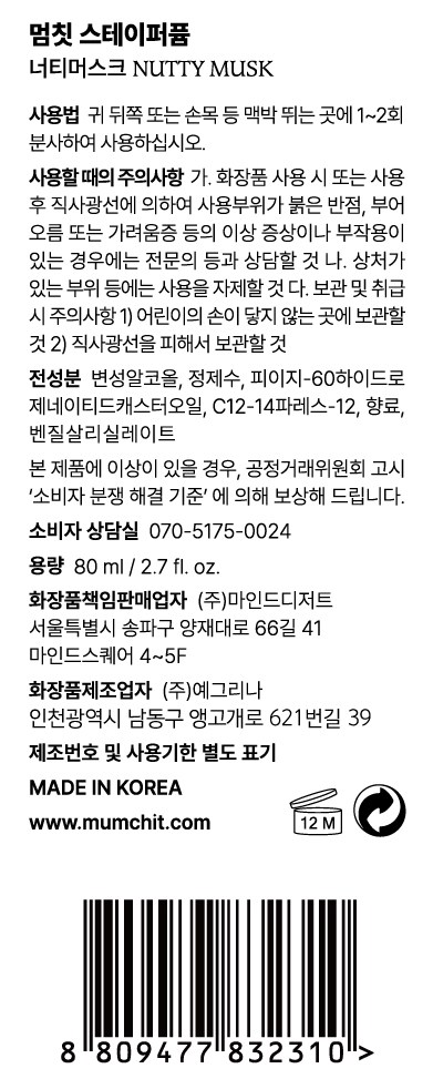| 화장품제조업자, 화장품책임판매업자 및 맞춤형화장품판매업자 | (주)예그리나 / (주)마인드디저트 | 제조국 | 대한민국 |