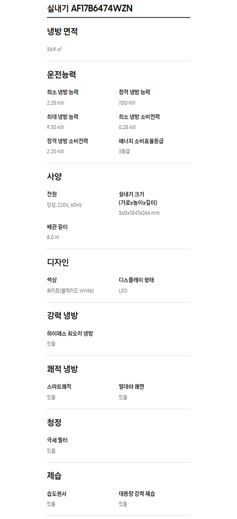 | 정격전압, 소비전력 | 220V×60㎐ | 2.2㎾ | 에너지소비효율등급 | 3등급 |