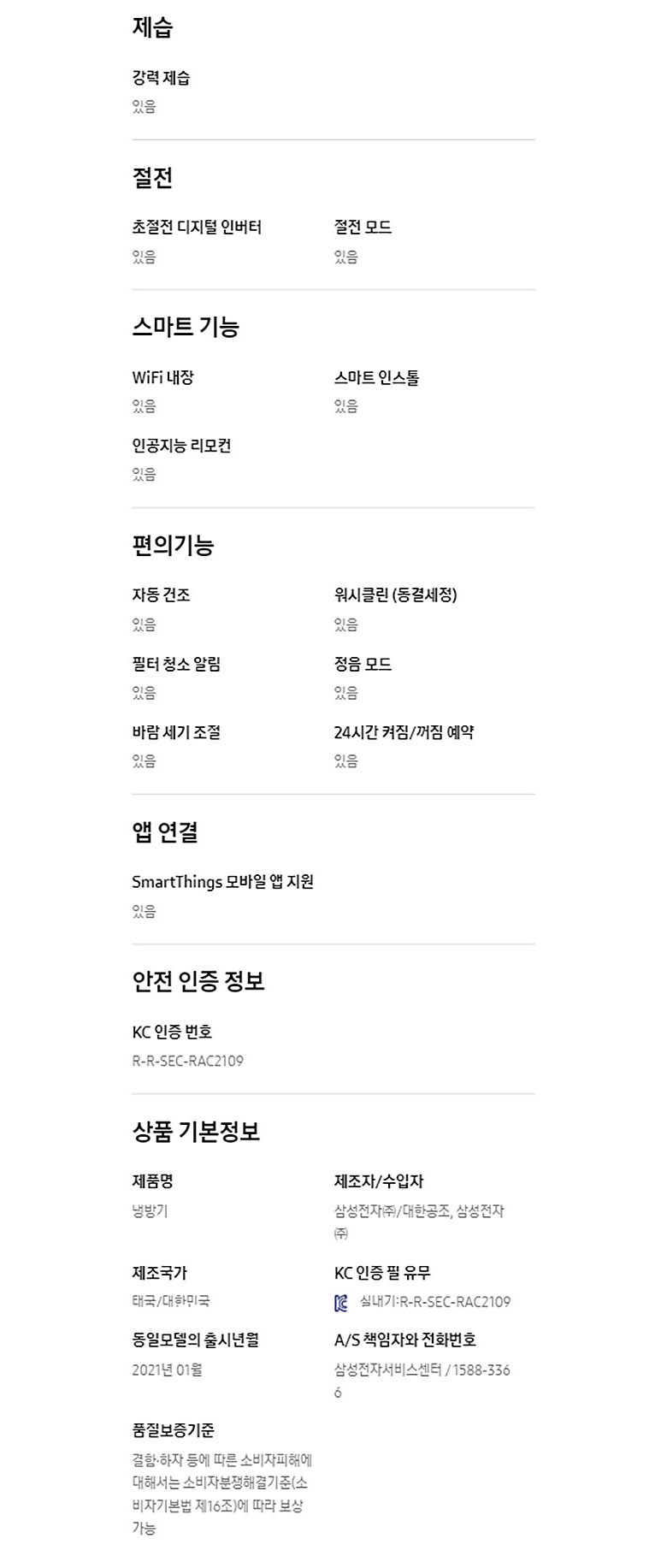 | 출시년월 | 상품 상세페이지 참조 | 제조자(수입자) | 삼성전자 |