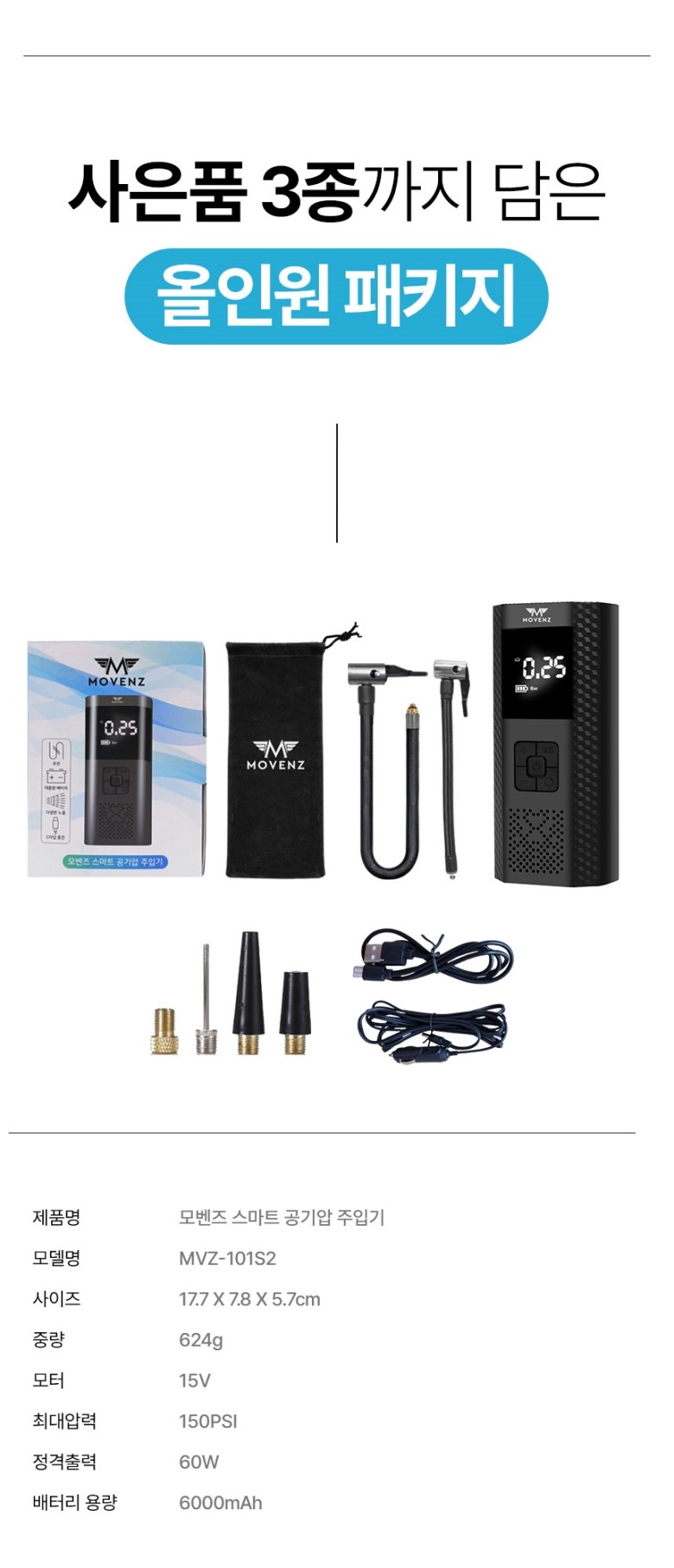 | 품명 및 모델명 | 모벤즈 무선 타이어 공기압 주입기 에어펌프 + 30cm 연장선 풀세트 / MVZ-101 | 동일모델 출시년월 | 2023년 03월 |