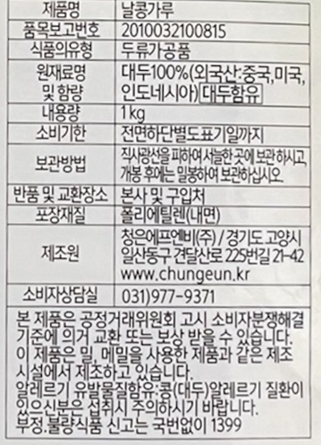 | 포장단위별 내용물의 용량(중량), 수량 | 1kg x 1개 | 원재료명 및 함량 | 컨텐츠 참조 |