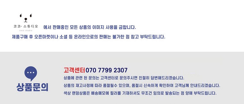 - ㆍ모니터 해상도의 차이로 인해 색상이나 이미지가 실제와 달라, 고객이 단순 변심으로 교환/반품을 무료로 요청하는 경우