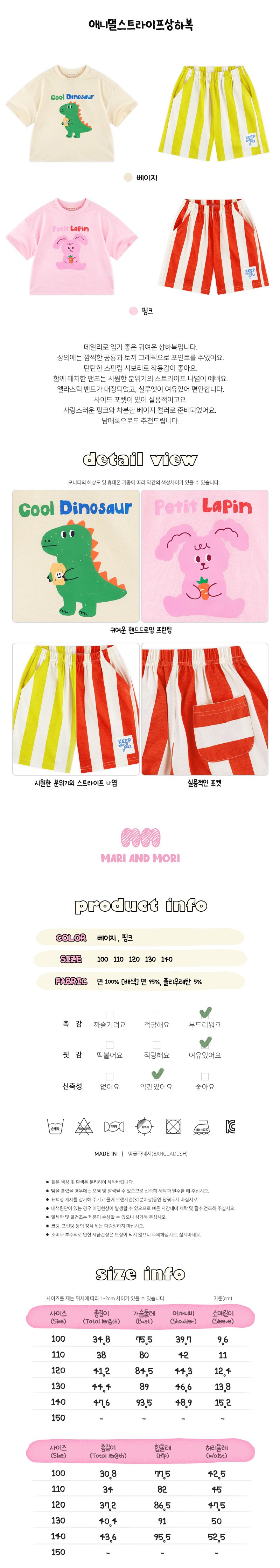 | 품명 및 모델명 | 마리앤모리 아동용 애니멀스트라이프 상하복 세트 | KC 인증정보 | 유/KC마크 |