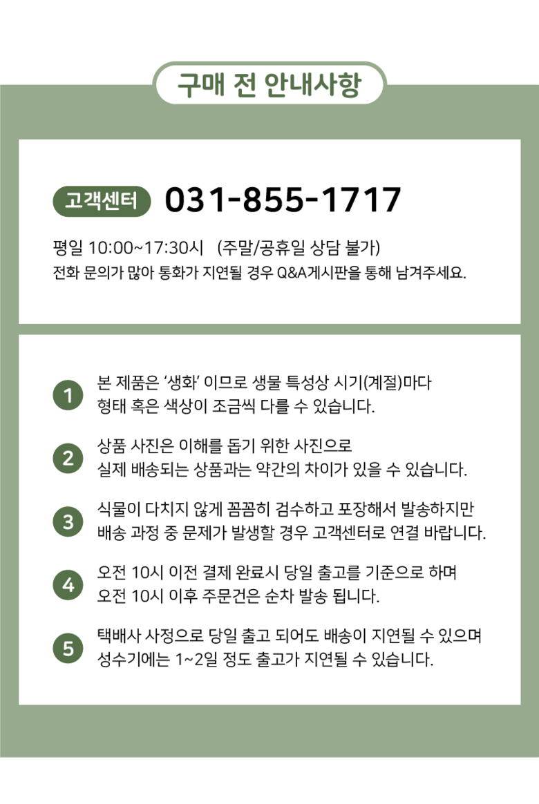 - 상품문의 및 후기게시판을 통해 취소나 환불, 반품 등은 처리되지 않습니다.