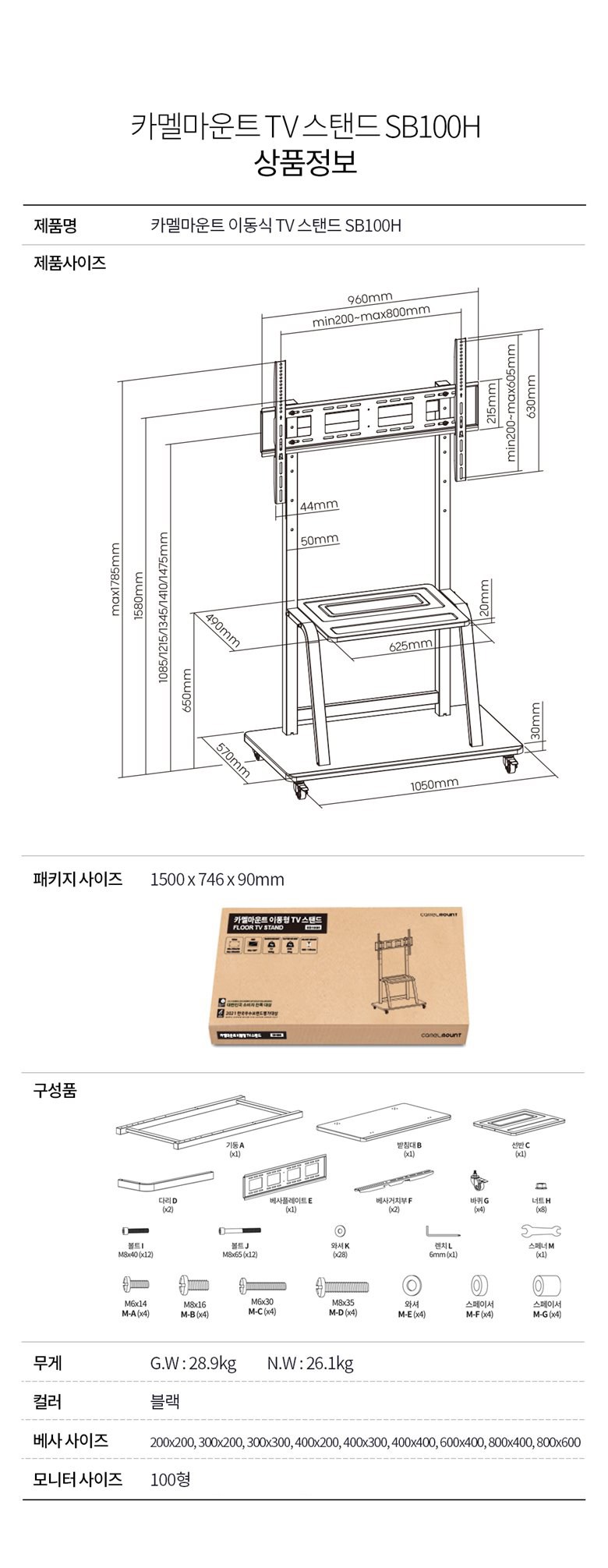 | 품명 및 모델명 | 카멜마운트 이동식 TV 스탠드 대형 | 인증/허가 사항 | 해당없음 |
