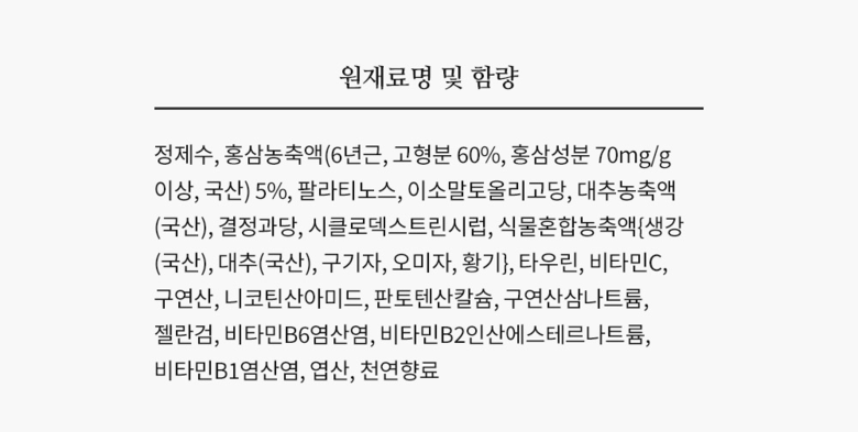 | 포장단위별 내용물의 용량(중량), 수량 | 상품 상세페이지 참조 | 원재료명 및 함량 | 상품 상세페이지 참조 |