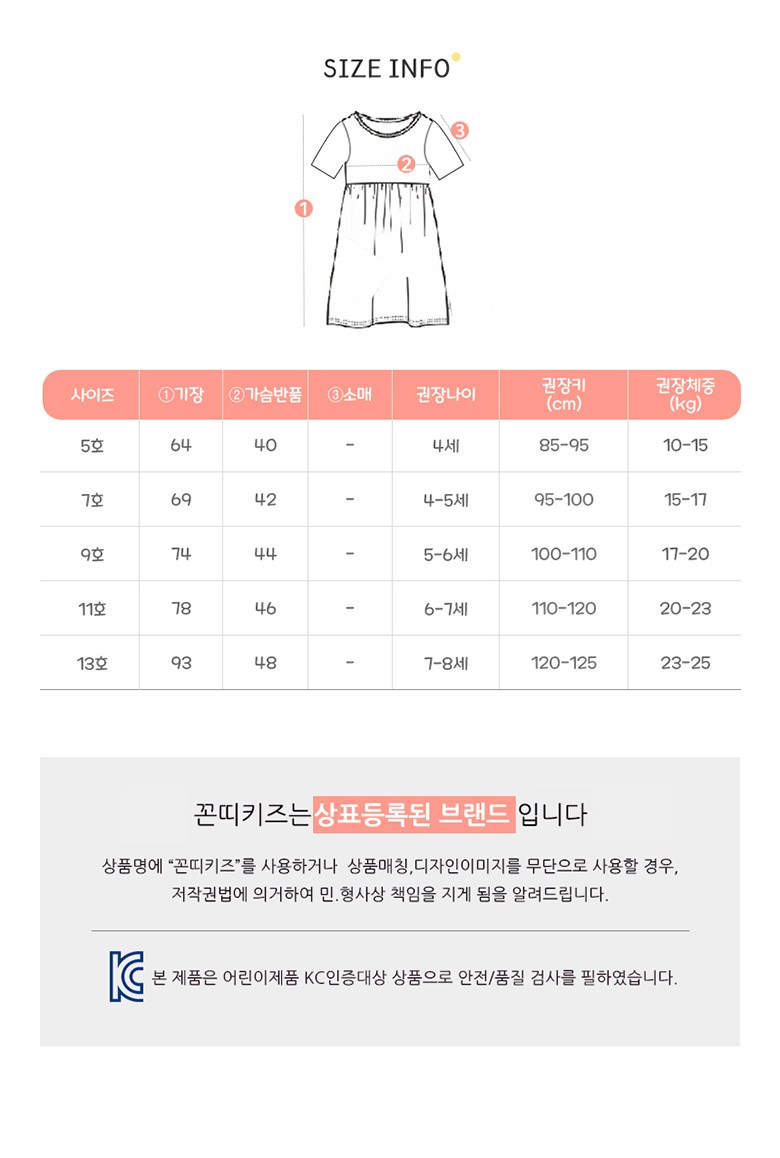 | 품명 및 모델명 | 꼰띠키즈 여아용 로마 원피스 | KC 인증정보 | 유/KC마크 |