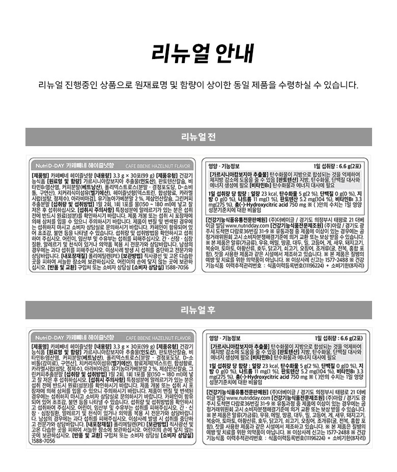 | 원료명 및 함량 | 컨텐츠 참조 | 영양정보 | 컨텐츠 참조 |