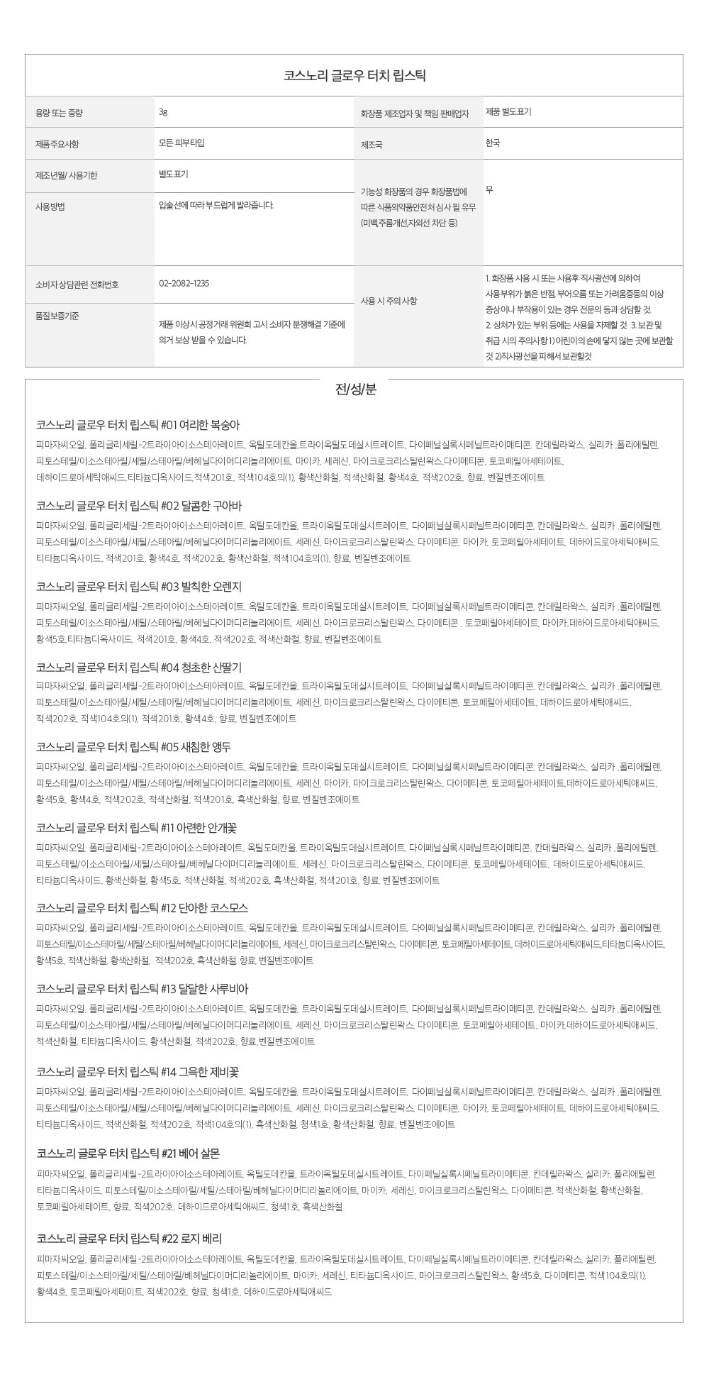| 용량(중량) | 3g | 제품 주요 사양 | 모든 피부용 |