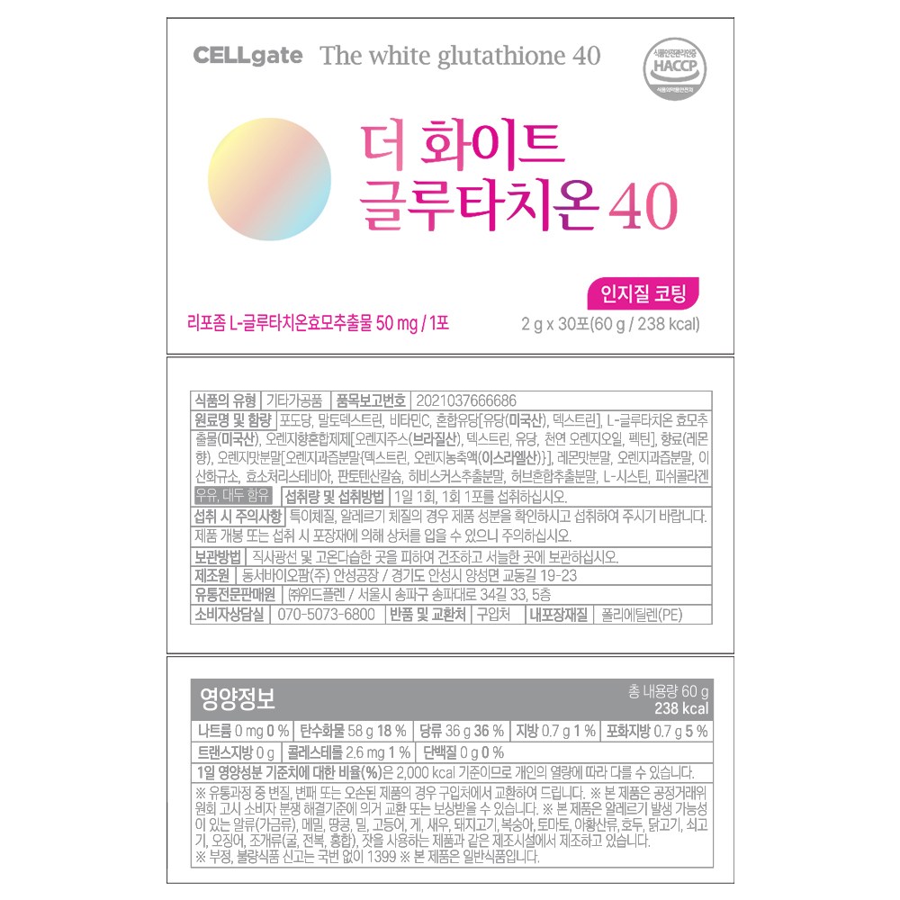 | 제품명 | 더 화이트 글루타치온 40 | 식품의 유형 | 컨텐츠 참조 |