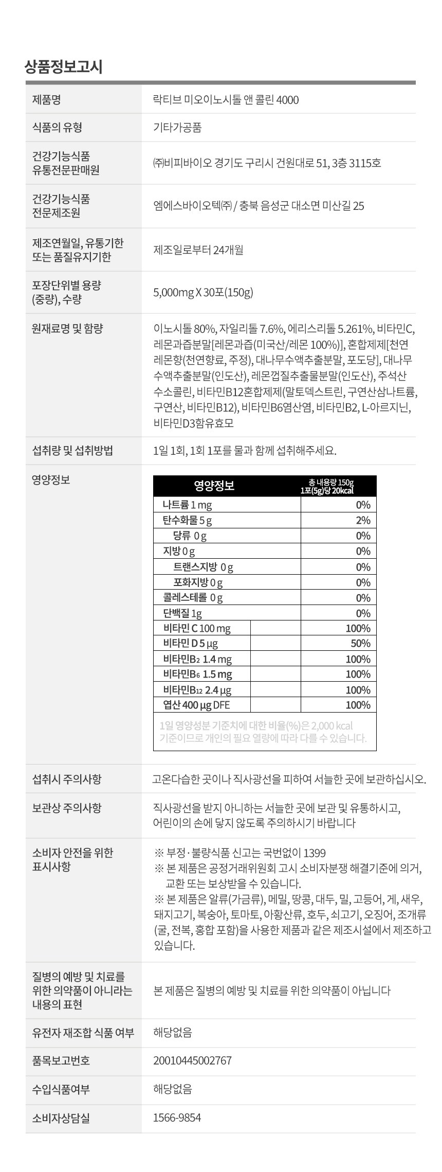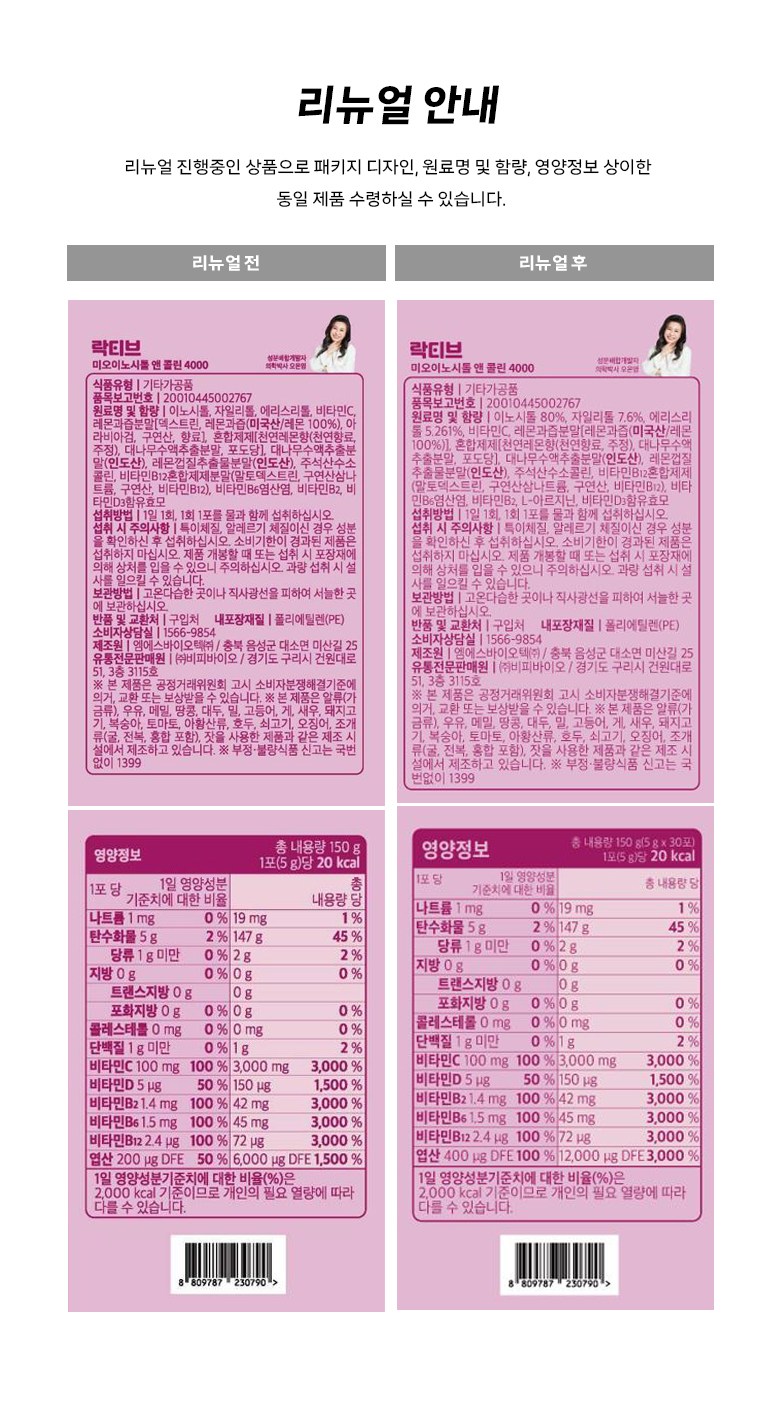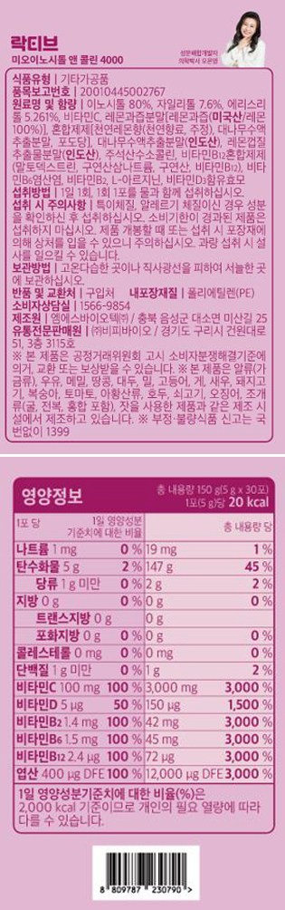 | 제품명 | 락티브 미오이노시통 앤 콜린 4000 | 식품의 유형 | 컨텐츠 참조 |