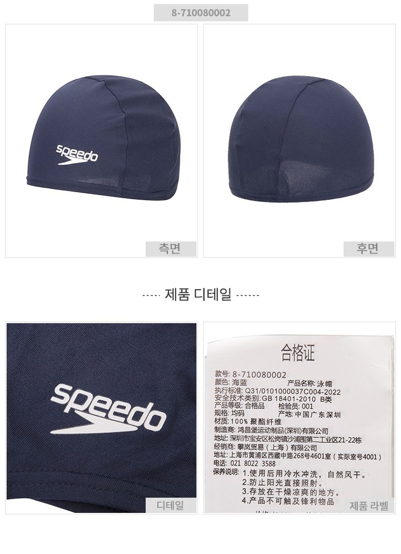 폴리에스테르로 제작된 스피도 캡 수영모입니다.