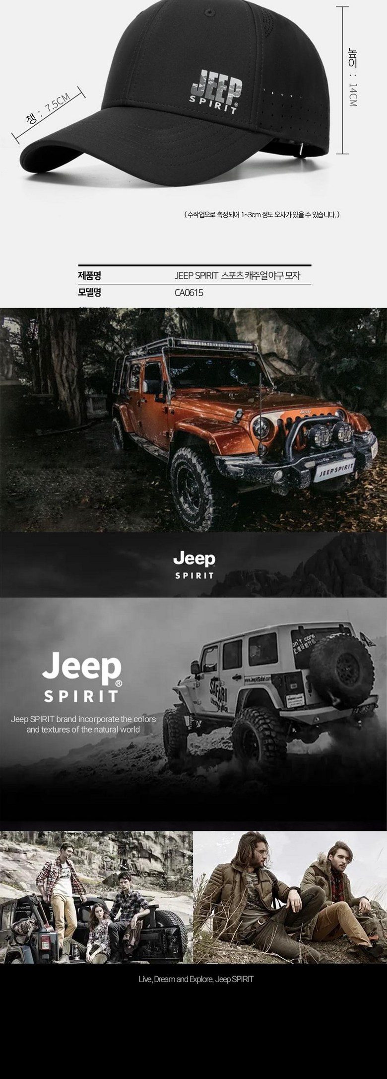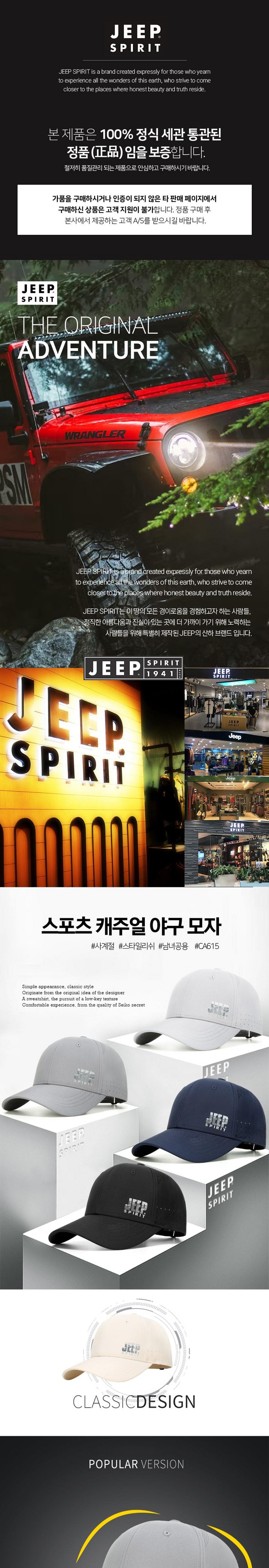 | 종류 | JEEP SPIRIT 스포츠 캐주얼 야구모자 CA0615 | 소재 | 폴리에스터 100%(심지,상표,보강재,자수,장식 제외) |