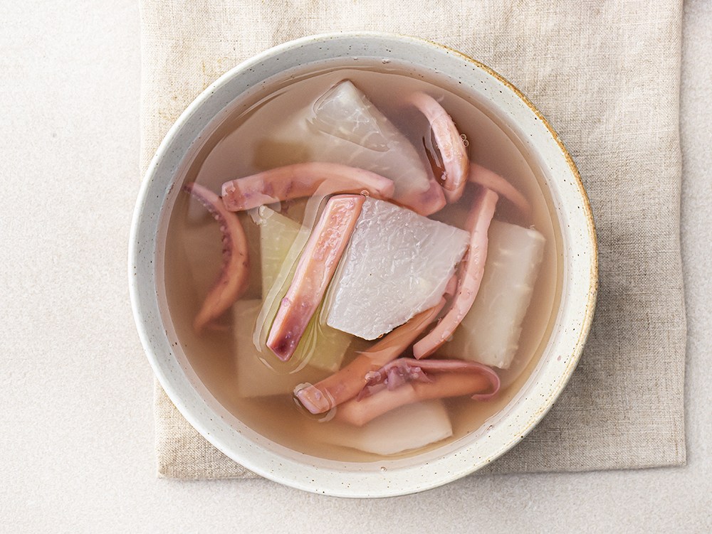 시원하게 끓여 담백한 맛이 뛰어난 오징어무국이에요. 끓일수록 달달함이 올라오는 무와 시원하고 깔끔한 국물 요리에 제격인 오징어가 만나 진한 맛을 냈답니다. 보글보글 끓여주기만 하면 정갈한 한 상을 완성할 수 있어요.