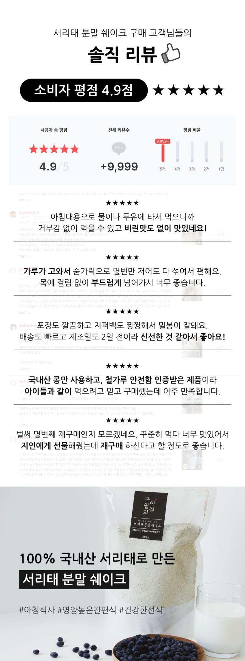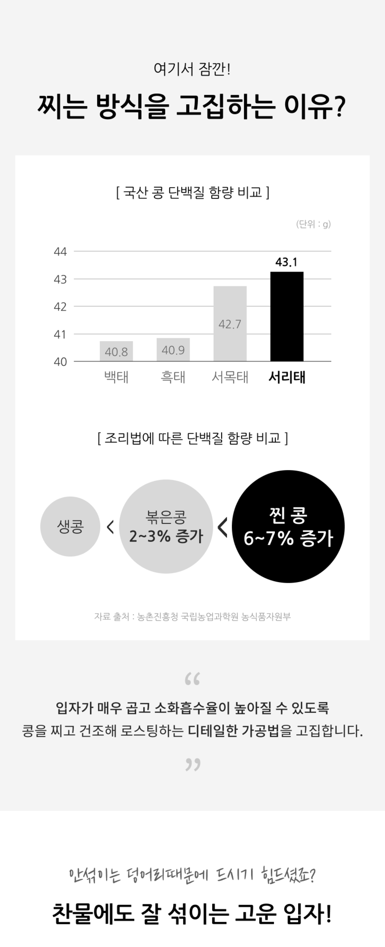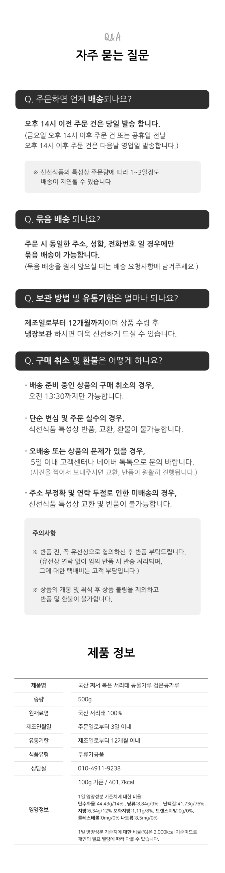 | 원재료명 및 함량 | 국산 서리태분말 100% | 영양성분 | 상세페이지참고 |