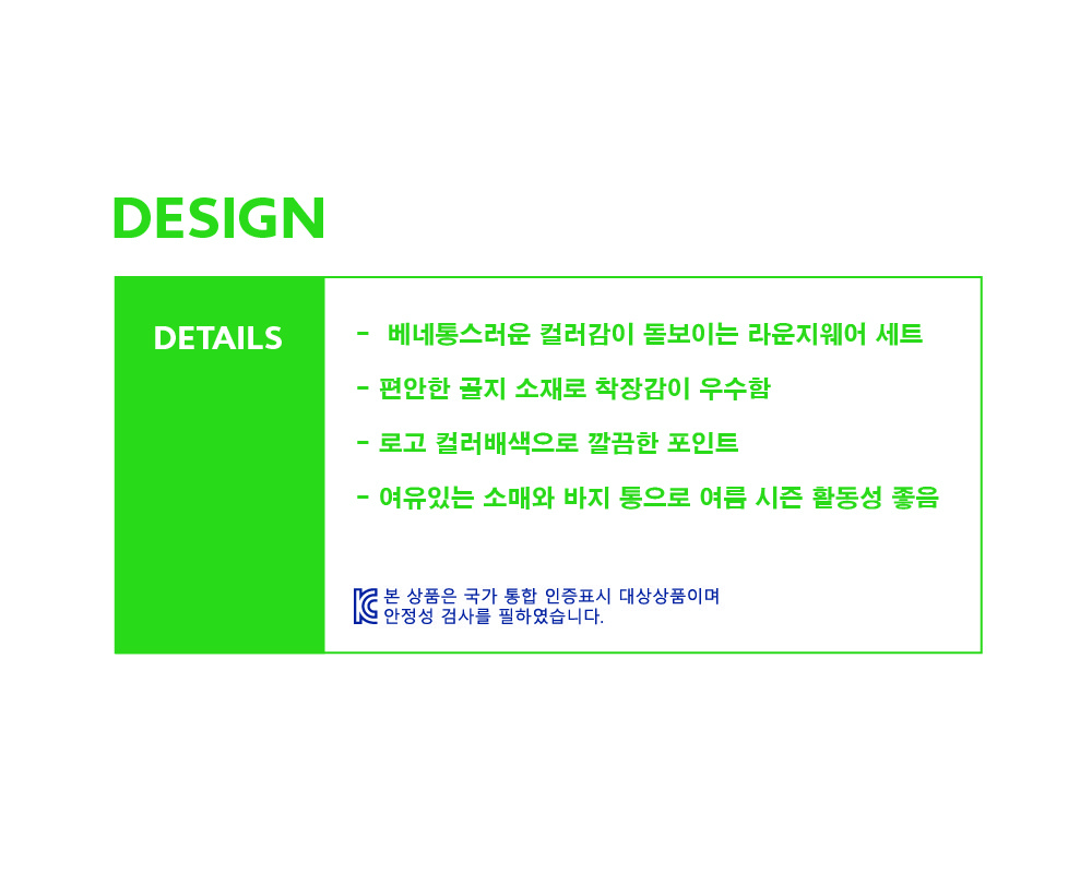 | 품명 및 모델명 | 베네통키즈 아동용 컬러 5부 실내복 상하의 세트 QCETQ4331 | KC 인증정보 | 유/KC마크 |