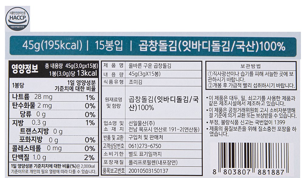 올바른 구운 곱창돌김
