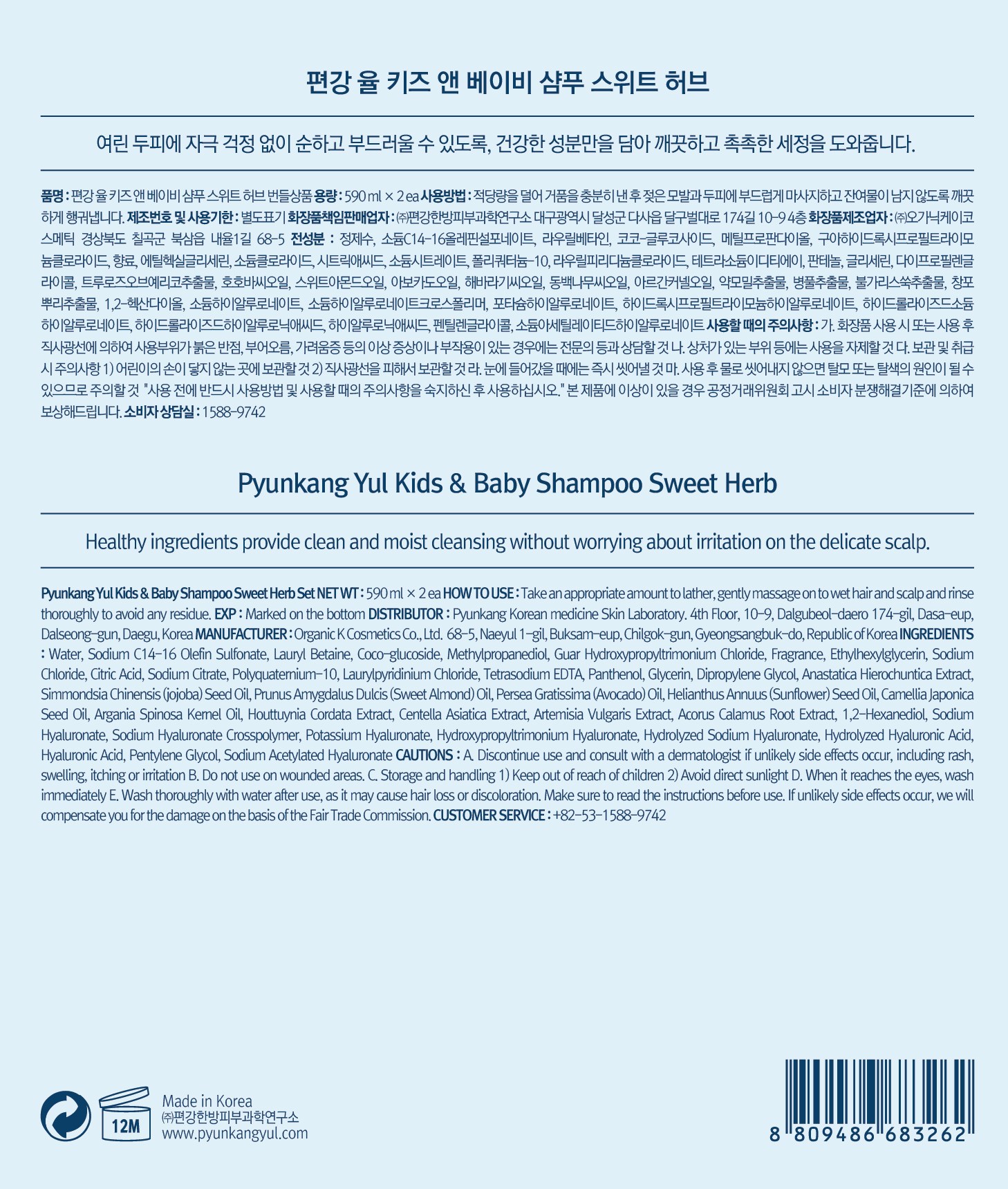 | 화장품제조업자, 화장품책임판매업자 및 맞춤형화장품판매업자 | 컨텐츠 참조 | 제조국 | 대한민국 |