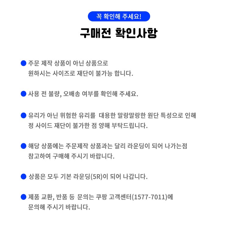 - ㆍ교환/반품에 관한 일반적인 사항은 판매자가 제시사항보다 관계법령이 우선합니다.