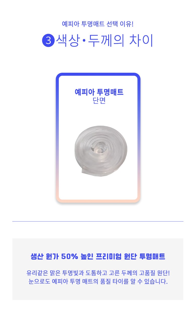 | 품명 및 모델명 | 예피아 PVC 모서리라운딩 투명매트 3mm | 재질 | PVC |
