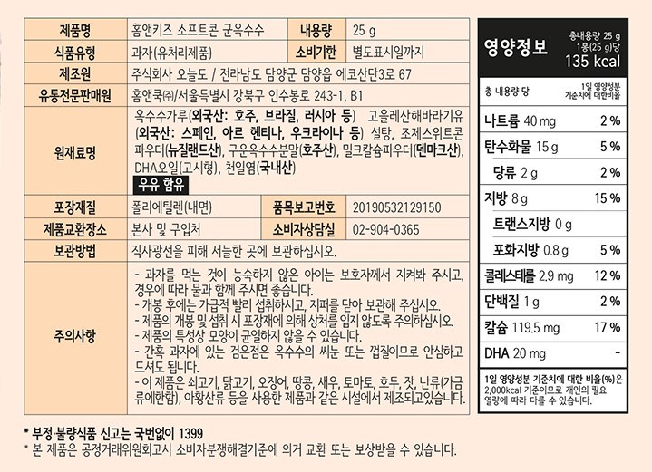 | 생산자 및 소재지 | 컨텐츠 참조 | 제조연월일, 소비기한 또는 품질유지기한 | 소비기한(또는 유통기한) : 2026년 07월 20일 이거나 그 이후인 상품 제조년월일 : 2025년 04월 13일 이후인 제조상품 |